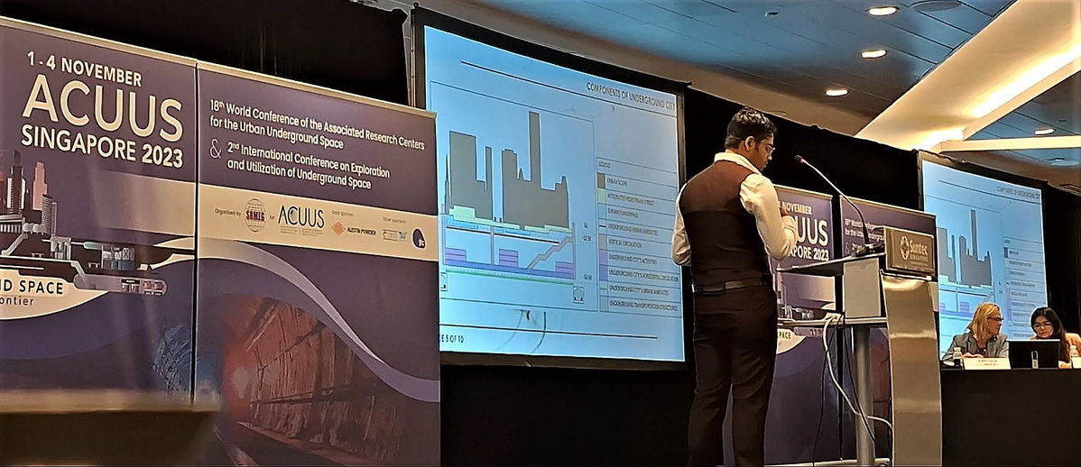 Being from Kolkata, and having visited a few megacities of India, I was constrained to the possible utilities of underground space. For a country like India, economics and sustainable development is the core priority, and most of India's city is expanding. So, the expansion of CBD or increasing the grades of transportation infrastructure can successfully control the increasing urbanization for the upcoming 10 to 20 years. From an economic point-of-view developing an underground tunnel is 100 times costlier than having an elevated grade separation. I also read the research of Jacques Besner, the urban planner at Montreal's Underground City and also the co-founder of ACUUS, with whom I had a chance to meet at ACUUS 2023.
